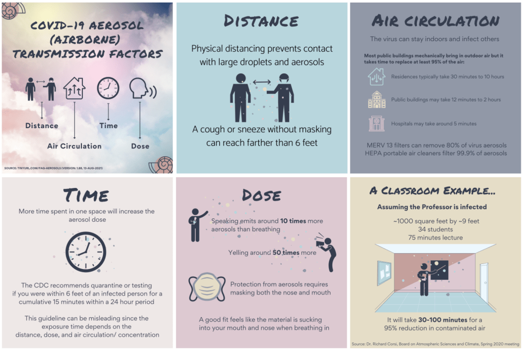 The discovery that COVID-19 is transmitted mainly through the air can be credited to these scientists who assert that the most important factors in considering aerosol transmission are distance, air circulation, time, and dose 🌬🌬